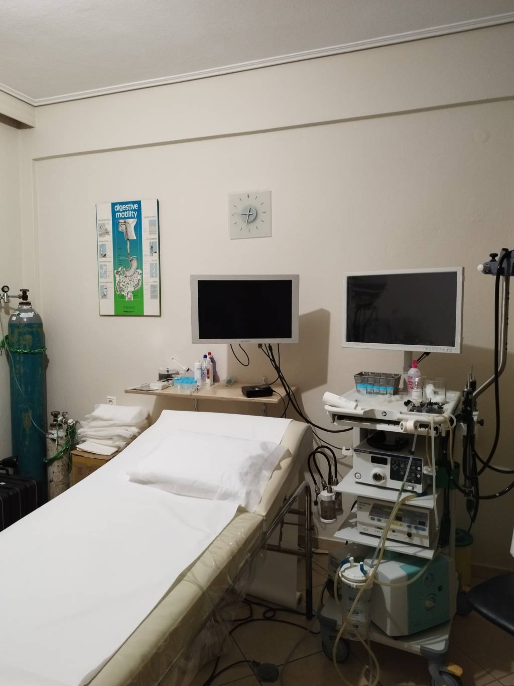 Ο ενδοσκοπικός έλεγχος πραγματοποιείται σε άρτια εξοπλισμένο χώρο (& χώρο ανάνηψης) με σύγχρονο ενδοσκοπικό σύστημα της εταιρείας Olympus (γαστροσκόπιο: GIF-H170 KAI κολονοσκόπιο: CF-H170L) και πιστοποιημένα αναλώσιμα υλικά. Οι εξετάσεις διενεργούνται υπό καταστολή (μέθη) και με χορήγηση διοξειδίου (CO2) για καλύτερη ανοχή. Υπάρχει δυνατότητα παρακολούθησης των ζωτικών σημείων κατά την εξέταση , καθώς και χορήγησης αυξημένης καταστολής με τη συνδρομή Αναισθησιολόγου , κατόπιν συνεννόησης.